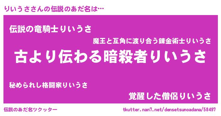 | 胡散臭い通販商品みたいなあだ名 | 『来世でも幸せになれる健康食品…その名も「りいうさ」』 |