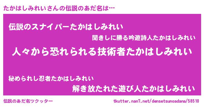 | ヒーロー風カッコイイあだ名 | 『友情の使者たかはしみれい』 |