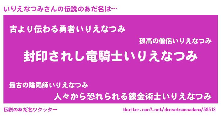 | 胡散臭い通販商品みたいなあだ名 | 『億万長者になれるブレスレット…その名も「いりえなつみ」』 |