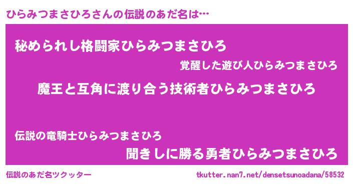 | ヒーロー風カッコイイあだ名 | 『慈愛の使者ひらみつまさひろ』 |