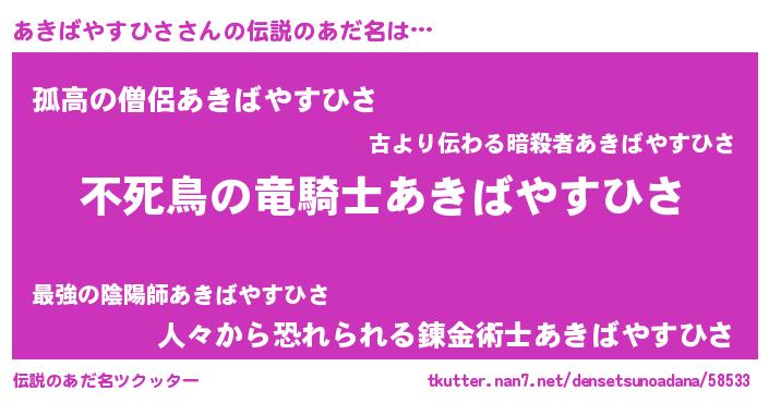 | ヒーロー風カッコイイあだ名 | 『スーパーアキバヤスヒサ』 |