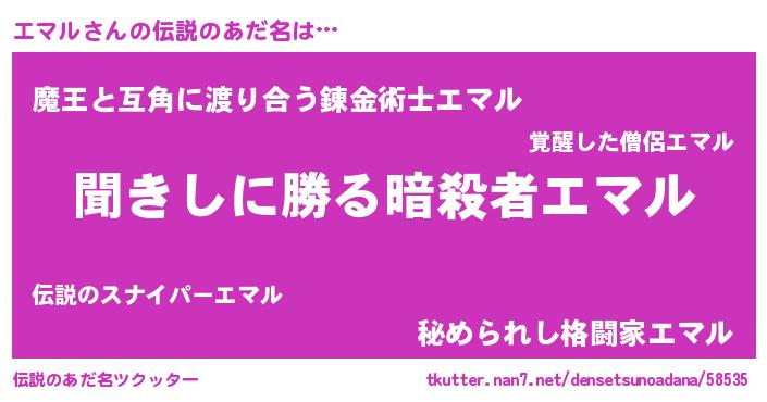 | 意味不明あだ名 | 『永久保存エマル』『自称エマル』 |