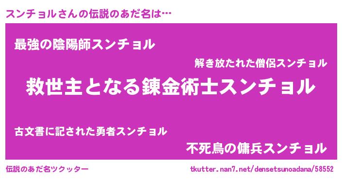 | ヒーロー風カッコイイあだ名 | 『天空の使者スンチョル』『幻影騎士スン』 |