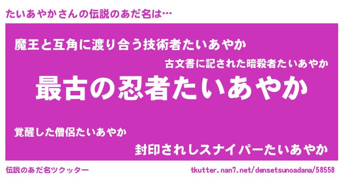 | ファンタジー風あだ名 | 『エターナルタイアヤカー』『タイフェル』 |