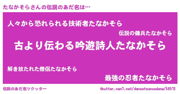 | ヒーロー風カッコイイあだ名 | 『仮面タナダー』『ネオタナカソラ』 |
