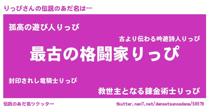 | ヒーロー風カッコイイあだ名 | 『サイバー戦士リッピ』『仮面リッダー』 |