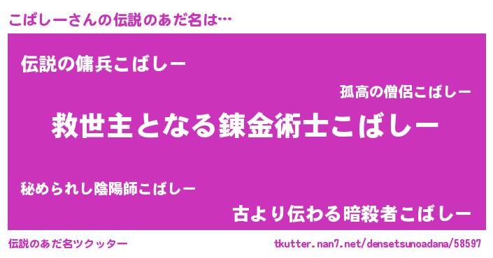 | ヒーロー風カッコイイあだ名 | 『仮面コバダー』『正義の使者こばしー』 |