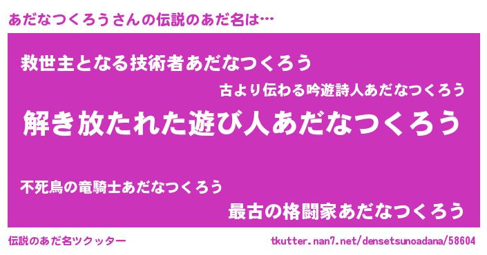| 意味不明あだ名 | 『とにかく怪しいあだなつくろう』 |