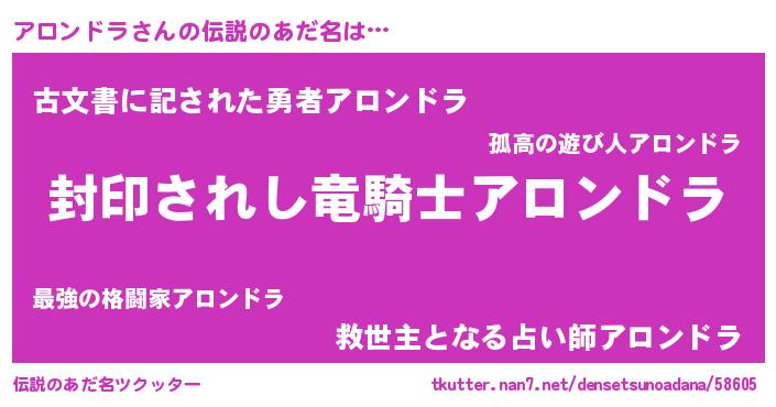 | 男性向けラノベタイトル風あだ名 | 『アロンドラアートオンライン』 |