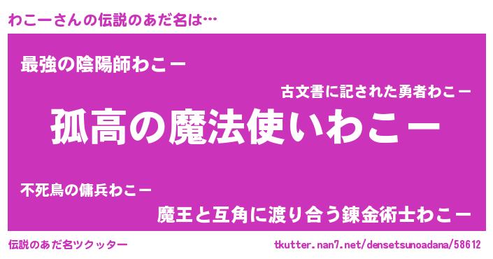 | 意味不明あだ名 | 『とにかく怪しいわこー』『自称わこー』 |