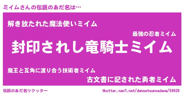 | ヒーロー風カッコイイあだ名 | 『スーパーミイム』『仮面ミイダー』 |