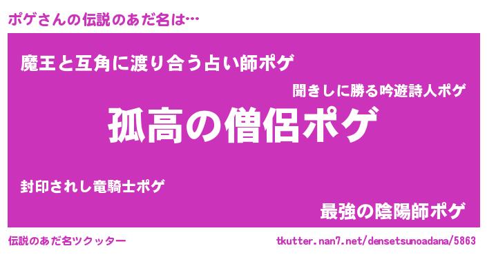 | 男性向けラノベタイトル風あだ名 | 『魔法科高校のポゲ』『ポゲスレイヤー』 |