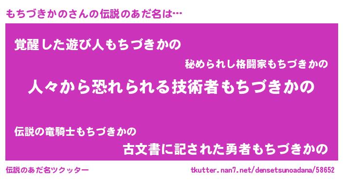| ヒーロー風カッコイイあだ名 | 『正義の使者もちづきかの』 |