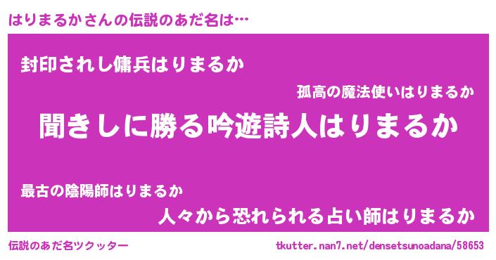 | ヒーロー風カッコイイあだ名 | 『ネオハリマルカ』『スーパーハリマルカ』 |