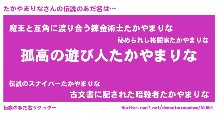 | 男性向けラノベタイトル風あだ名 | 『緋弾のタカヤマリナ』 |