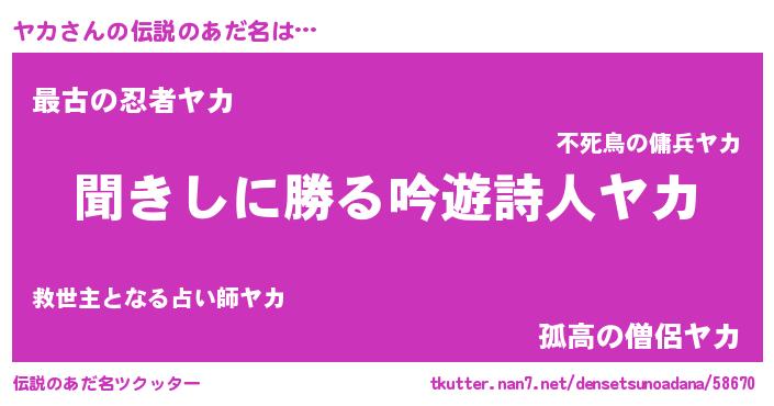 | 意味不明あだ名 | 『住所不定無職ヤカ(6歳)』『永久保存ヤカ』 |