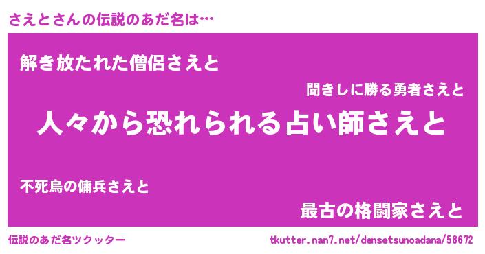 | 意味不明あだ名 | 『自称さえと』『眠気覚ましガムさえと味』 |