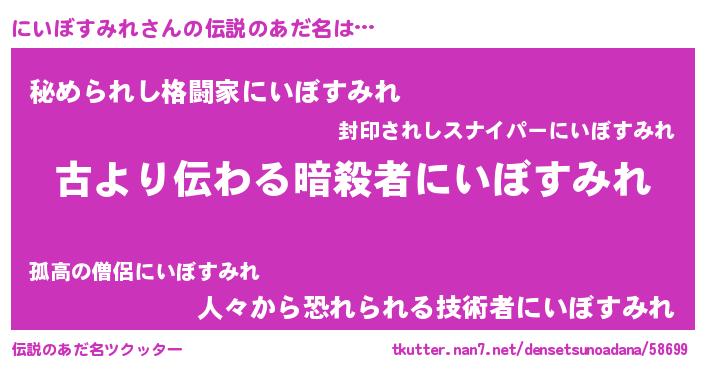 | ヒーロー風カッコイイあだ名 | 『仮面ニイダー』『ネオニイボスミレ』 |