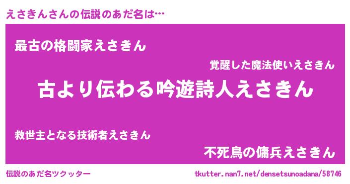 | 意味不明あだ名 | 『永久保存えさきん』『自称えさきん』 |