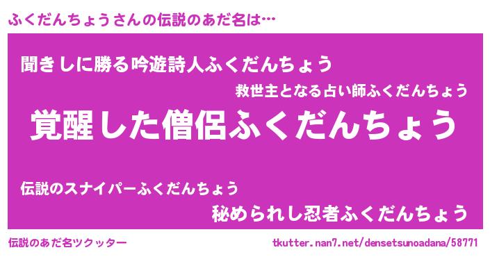 | ヘコむあだ名 | 『ふく太郎』『ふくだんちょう(小並感)』 |