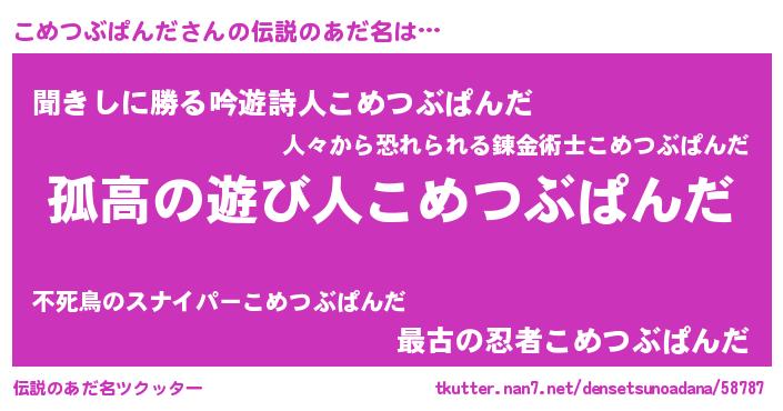 | ヒーロー風カッコイイあだ名 | 『黄金騎士コメ』『ネオコメツブパンダ』 |
