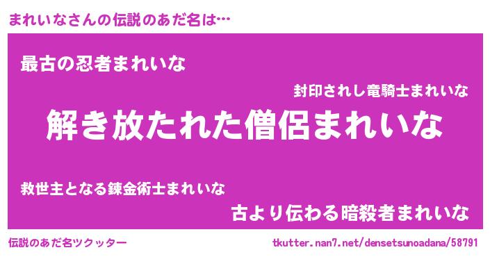 | 料理風あだ名 | 『まれいなごはん』 |