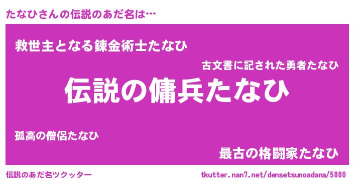| 男性向けラノベタイトル風あだ名 | 『魔弾の王とたなひ』『たなひの憂鬱』 |
