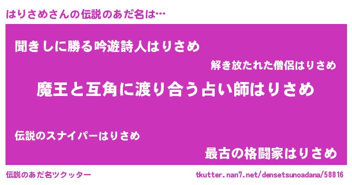 | ヒーロー風カッコイイあだ名 | 『愛の使者はりさめ』『ネオハリサメ』 |