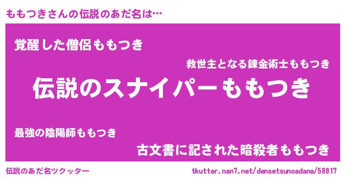 | 胡散臭い通販商品みたいなあだ名 | 『必ず成功する霊験あらたかなお札…その名も「ももつき」』 |