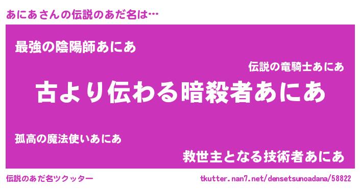 | 意味不明あだ名 | 『永久保存あにあ』『自称あにあ』 |
