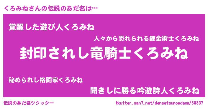 | 胡散臭い通販商品みたいなあだ名 | 『億万長者になれるブレスレット…その名も「くろみね」』 |