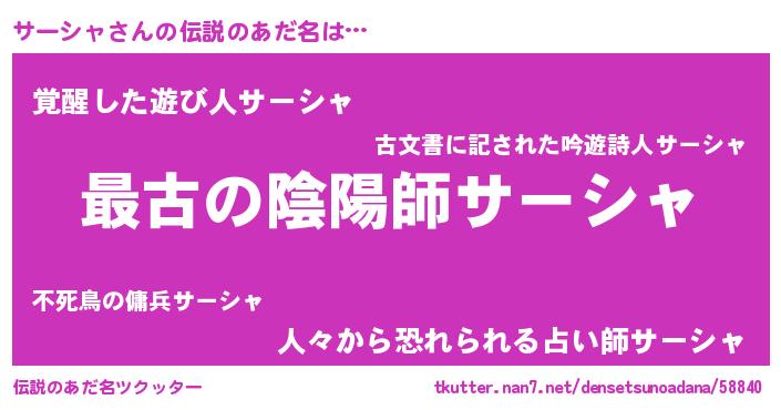 | ヒーロー風カッコイイあだ名 | 『仮面サーダー』『サイバー戦士サーシャ』 |