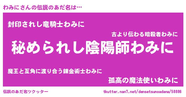 | 男性向けラノベタイトル風あだ名 | 『やはりわみにの青春ラブコメはまちがっている 』 |
