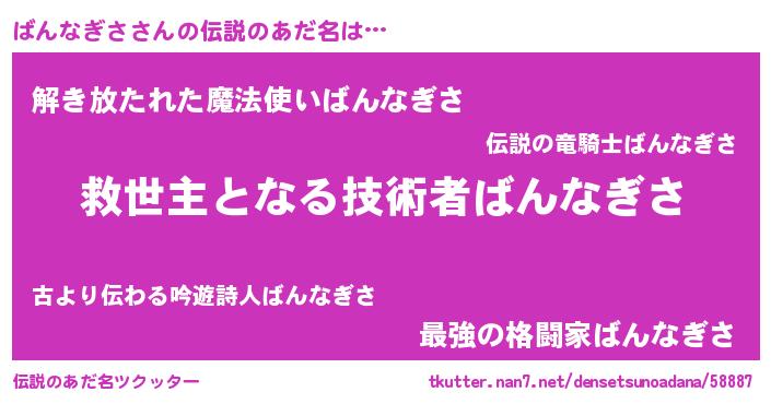 | 胡散臭い通販商品みたいなあだ名 | 『芸能人もオススメする高麗人参…その名も「ばんなぎさ」』 |