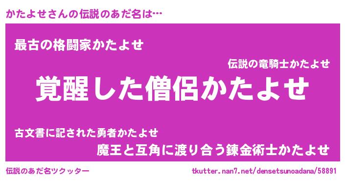 | ヒーロー風カッコイイあだ名 | 『究極戦士カタヨセ』『魔戒騎士カタ』 |