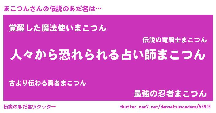 | ヒーロー風カッコイイあだ名 | 『超時空戦士マコツン』『仮面マコダー』 |