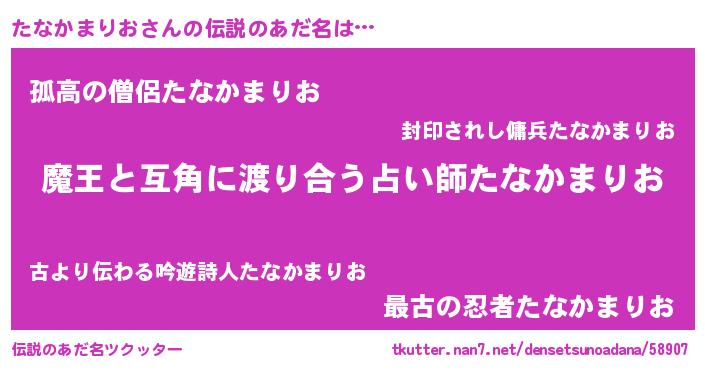 | 意味不明あだ名 | 『自称たなかまりお』 |