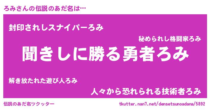 | 男性向けラノベタイトル風あだ名 | 『ろみという概念が存在しない退屈な世界 』 |
