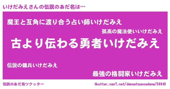 | 意味不明あだ名 | 『自称いけだみえ』『永久保存いけだみえ』 |