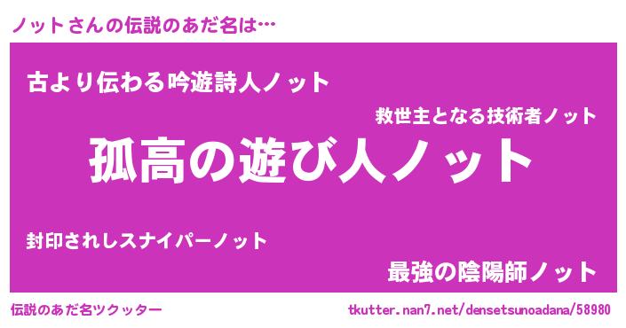 | 意味不明あだ名 | 『自称ノット』『とにかく怪しいノット』 |