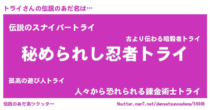 | ヒーロー風カッコイイあだ名 | 『ウルトラトライマン』『スーパートライ』 |