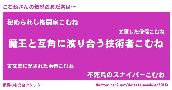 | 意味不明あだ名 | 『眠気覚ましガムこむね味』『自称こむね』 |