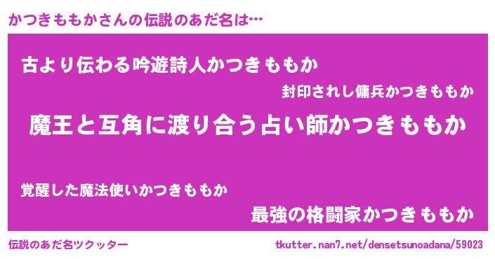 | 男性向けラノベタイトル風あだ名 | 『この素晴らしい世界にかつきももかを!』 |