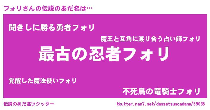 | ヒーロー風カッコイイあだ名 | 『ウルトラフォリマン』『ネオフォリ』 |
