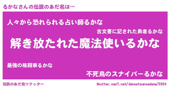 | ヒーロー風カッコイイあだ名 | 『魔戒騎士ルカ』『正義の使者るかな』 |
