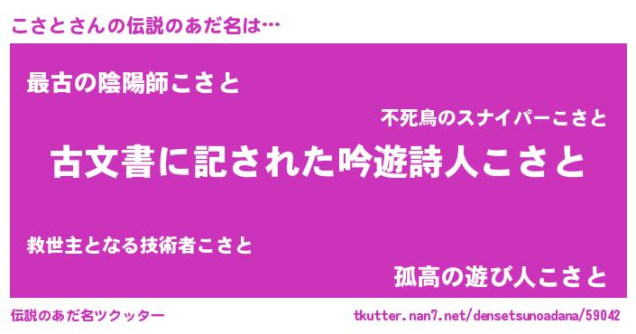 | 意味不明あだ名 | 『住所不定無職こさと(12歳)』 |