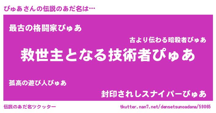 | 欧米人風あだ名 | 『ダニエルぴゅあ』『アンジェラ・ぴゅあ』 |