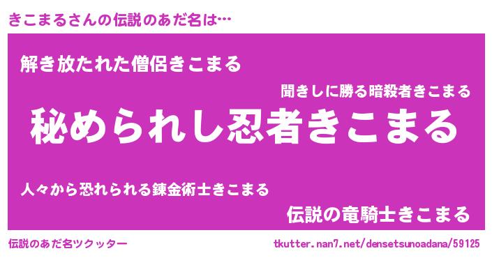 | ヒーロー風カッコイイあだ名 | 『超時空戦士キコマル』『仮面キコダー』 |