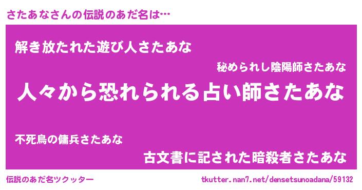 | 男性向けラノベタイトル風あだ名 | 『サタアナスレイヤー』 |