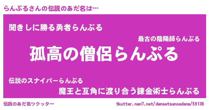 | 男性向けラノベタイトル風あだ名 | 『緋弾のランプル』『ランプルスレイヤー』 |